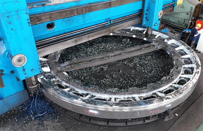 回转窑大齿轮则以剖分式结构为主,普遍采用剖分式结构(由 2~4 瓣拼接,通过法兰螺栓连接)。因为回转窑筒体长达数十米,铸钢件厂家发现其工作时因高温(会产生轴向和径向热变形,剖分式设计可通过微调各瓣位置,补偿筒体的变形误差,避免齿轮啮合卡滞。同时,剖分结构也方便现场安装和后期维护。