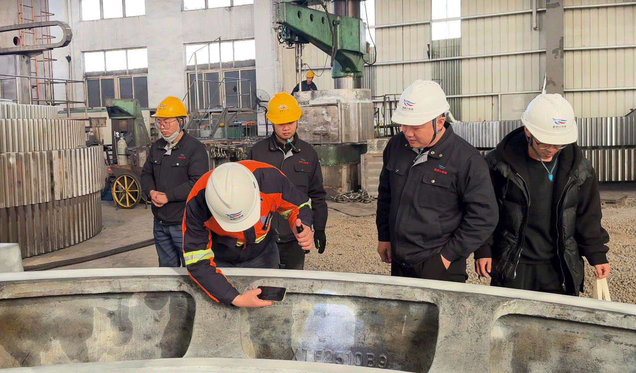 11月30日,艾法史密斯Jan Magleby与天山重工彭部长一行到河南新腾飞铸钢有限公司,现场验收φ6米大齿轮。