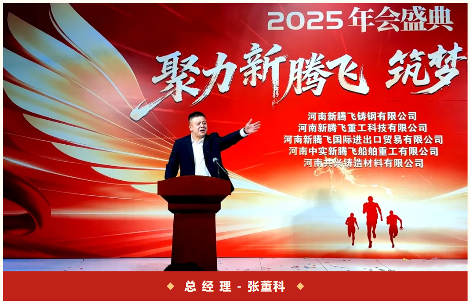 岁末钟声起,冬暖伴情长。2026年2月7日,河南新腾飞铸钢有限公司、河南新腾飞重工科技有限公司、河南新腾飞国际进出口贸易有限公司、河南中实新腾飞船舶重工有限公司、河南共兴铸造材料有限公司齐聚,隆重举办2025年会盛典。这场专属新腾飞人的岁末盛宴,以欢乐格奋斗荣光,以同心 凝聚前行动能,为来年并肩奋进筑牢底气。